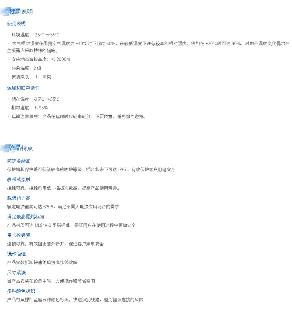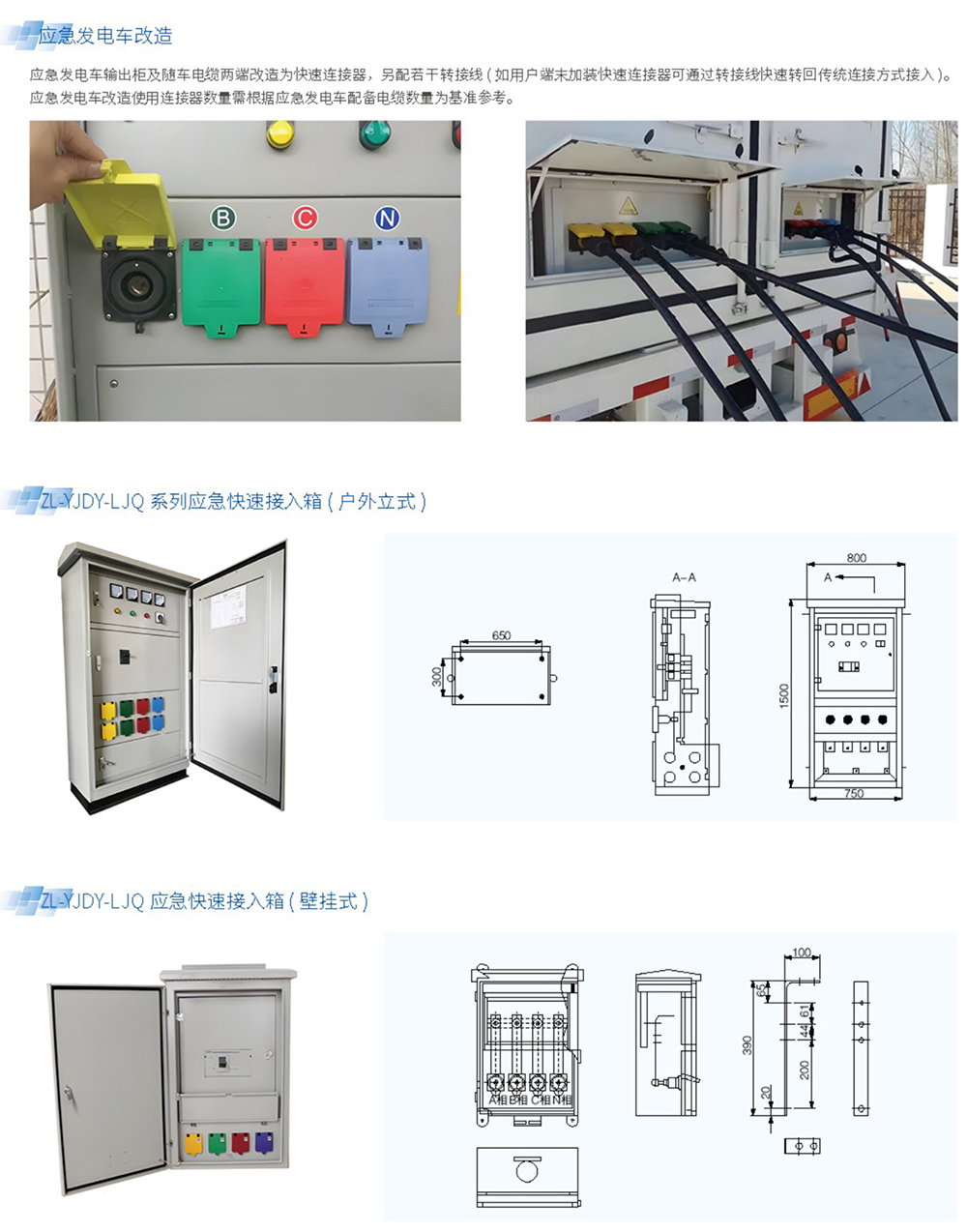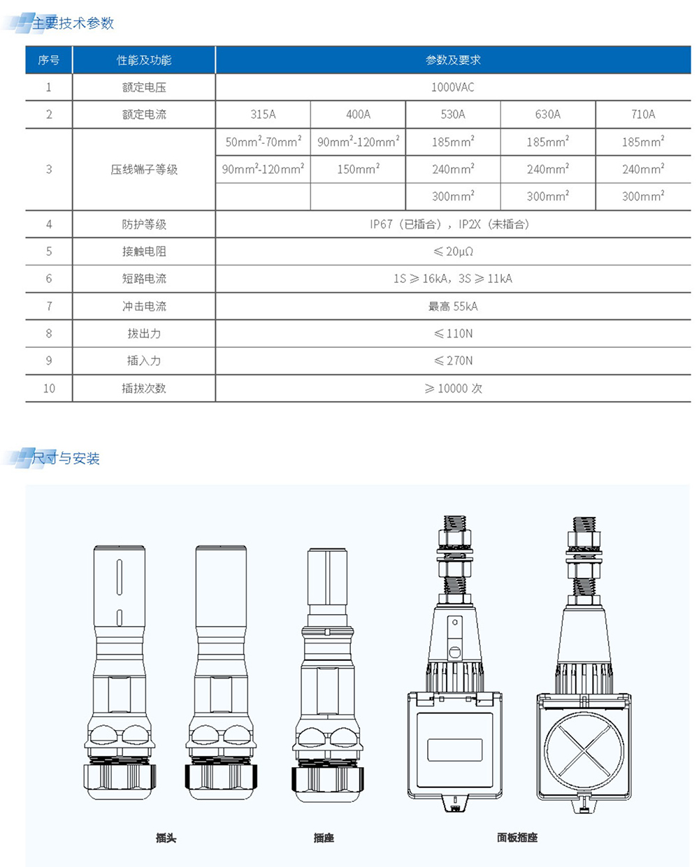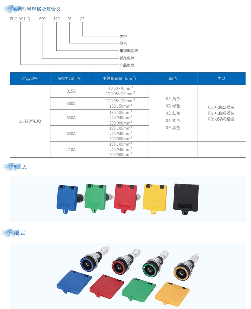 ZL-YJDY-LJQ低壓快速應(yīng)急插頭/插座分為:電纜公插頭、電纜母插頭和板端母插座,電纜母插頭用于電源車端電纜的連接,可以和電纜公插頭對(duì)接使用,電纜插頭插座和電纜連接采用壓接方式,板端插座安裝與配電柜上,和導(dǎo)線采用螺母螺柱緊固方式。公括頭插入母插座時(shí),公插頭的銅柱和插座銅柱圓孔中彈性表帶式多點(diǎn)接觸的觸指結(jié)構(gòu)配合,實(shí)現(xiàn)有壓力的多點(diǎn)接觸,形成可靠的導(dǎo)電通路,公插頭插入到位后,旋轉(zhuǎn) 90 度實(shí)現(xiàn)鎖緊,防止連接器意外斷開連接。